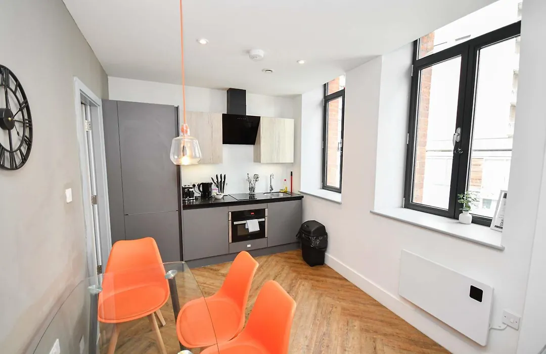 Among the self-catering amenities provided is a fully-equipped kitchen with an oven. The apartment is about 900 metres from Shudehill Interchange bus station.